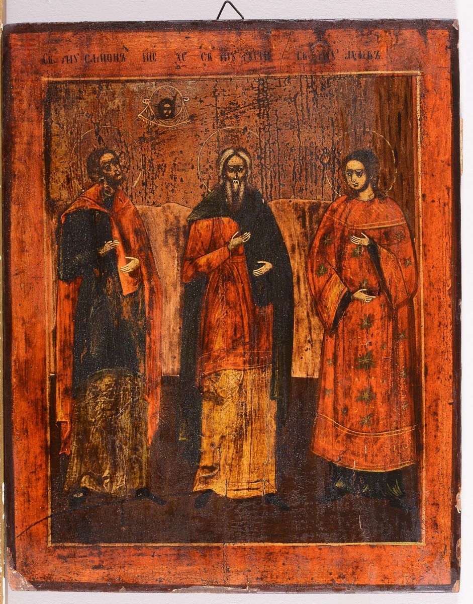 Lotto di due icone in legno, Russia XIX-XX secolo