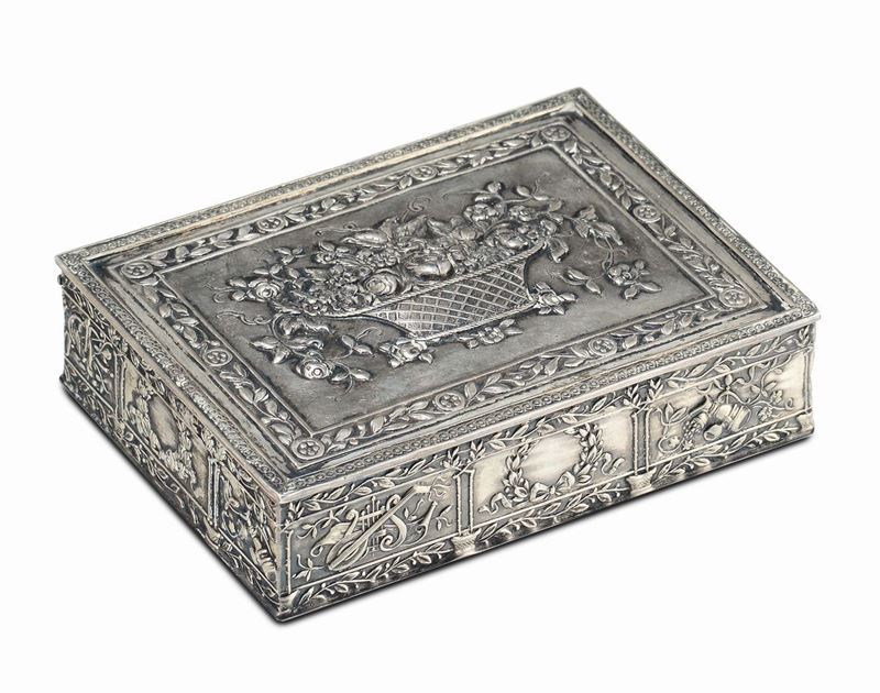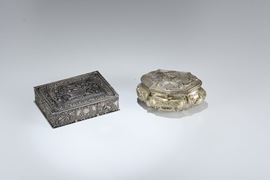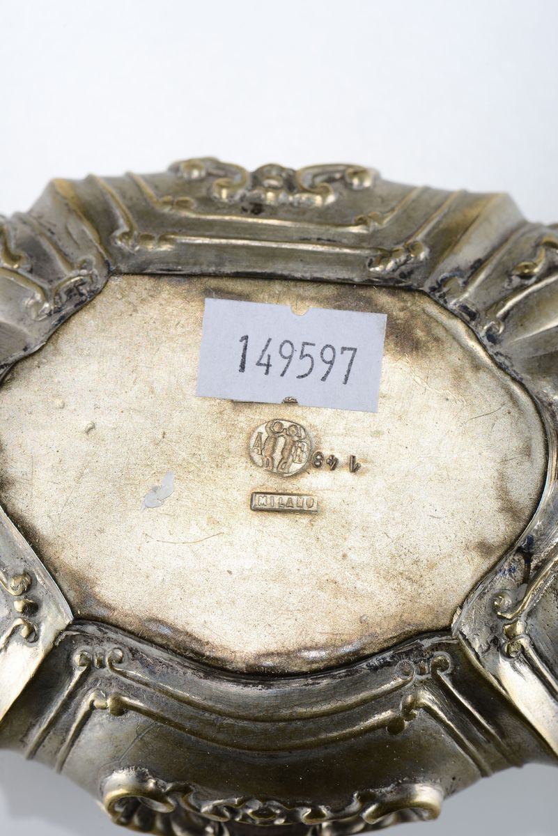 Lotto di due scatolette e cornice ovale in argento, XX secolo