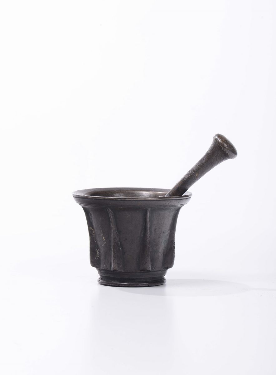 Mortaio in bronzo con pestello, XVI-XVII secolo