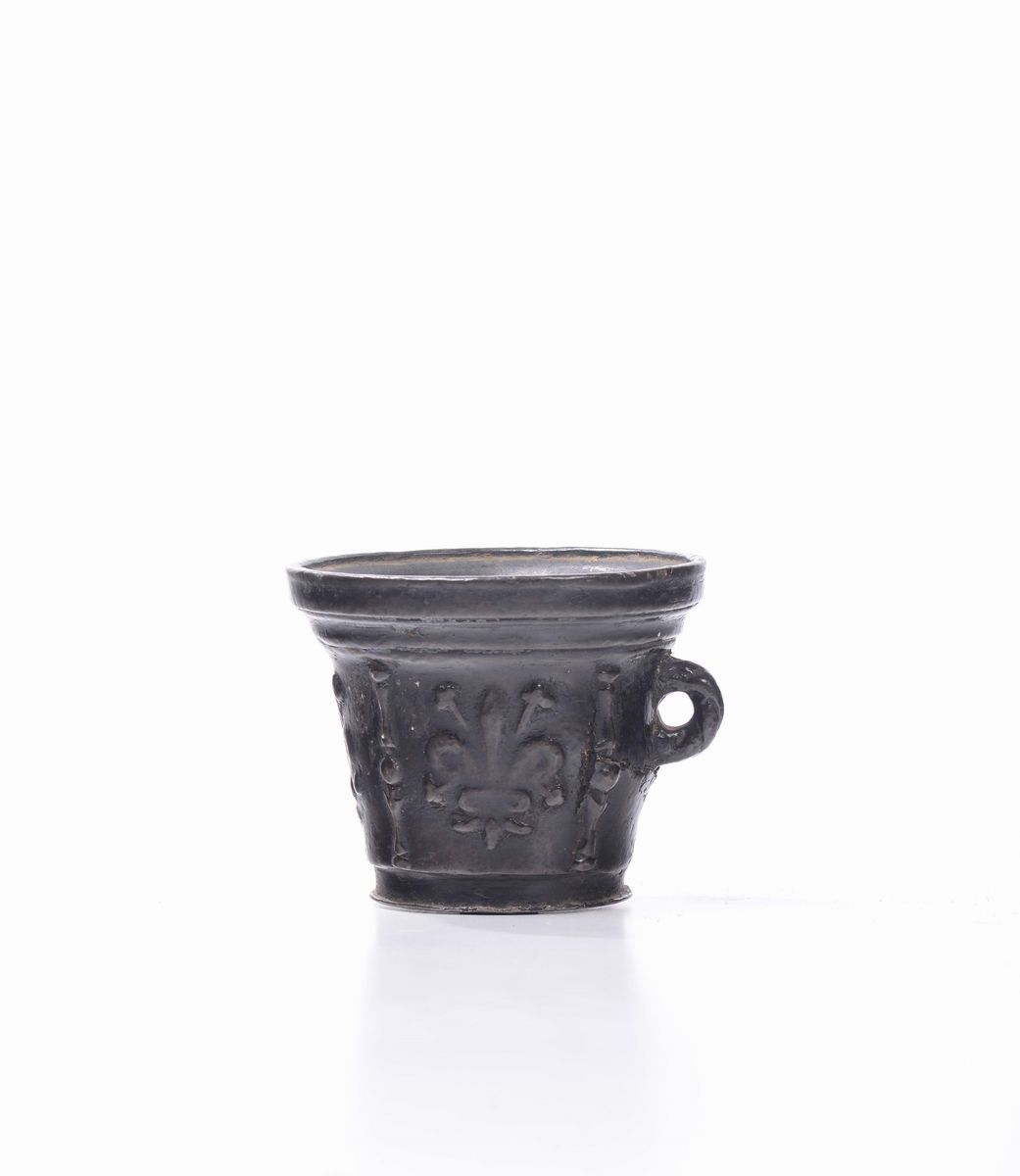 Mortaio in bronzo monoansato, XVI-XVII secolo