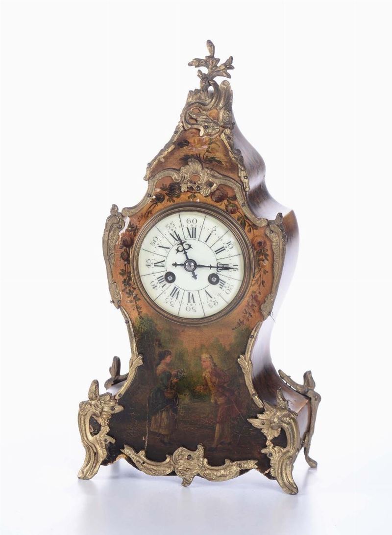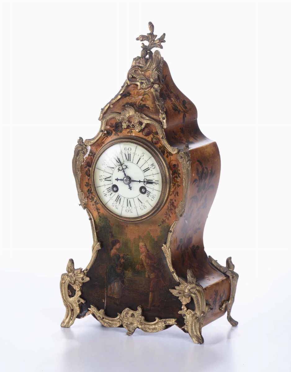 Pendola da tavolo con cassa interamente dipinta in policromia, XIX secolo
