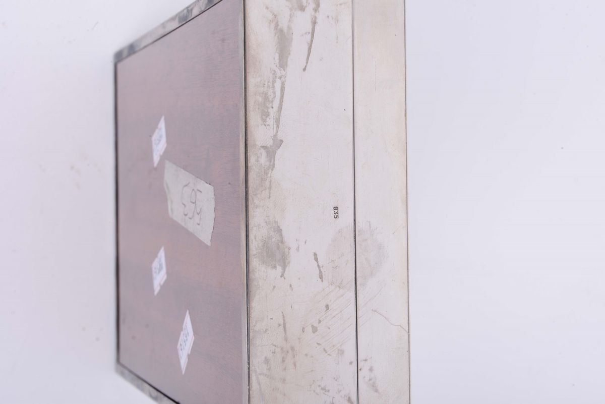 Scatola porta sigari in argento e legno con monogramma LEL, inizio XX secolo