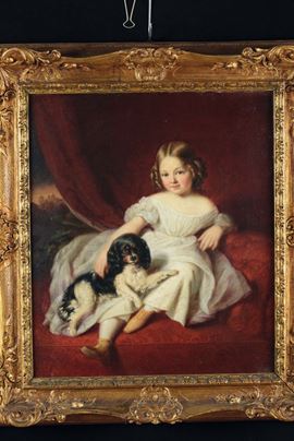 Scuola del XIX secolo Bambina con cagnolino