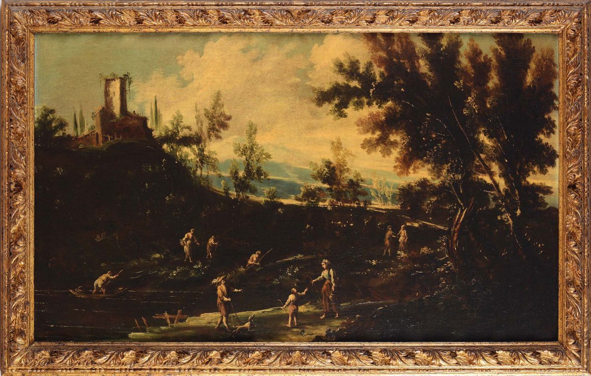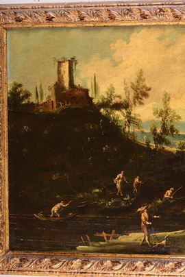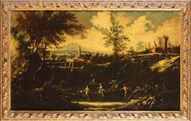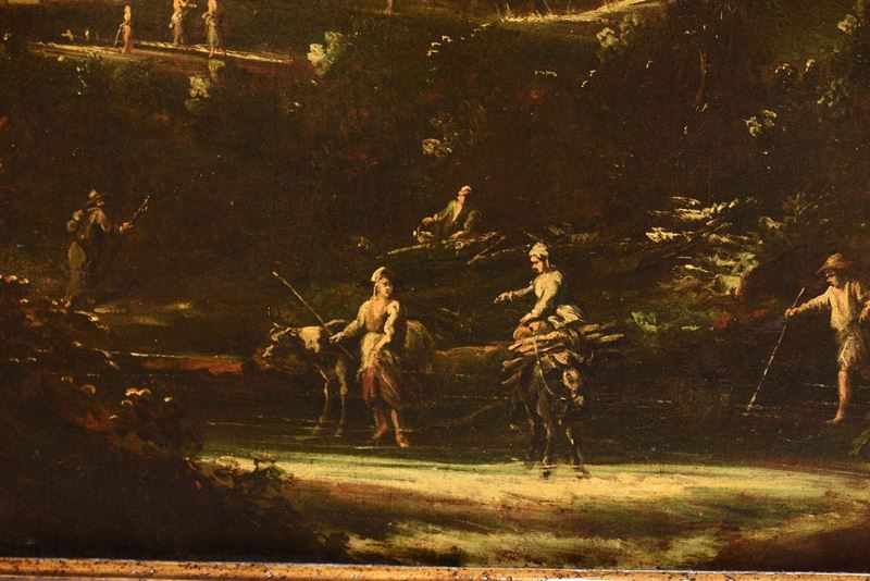 Scuola del XVIII secolo Paesaggio con figure Paesaggio con figure