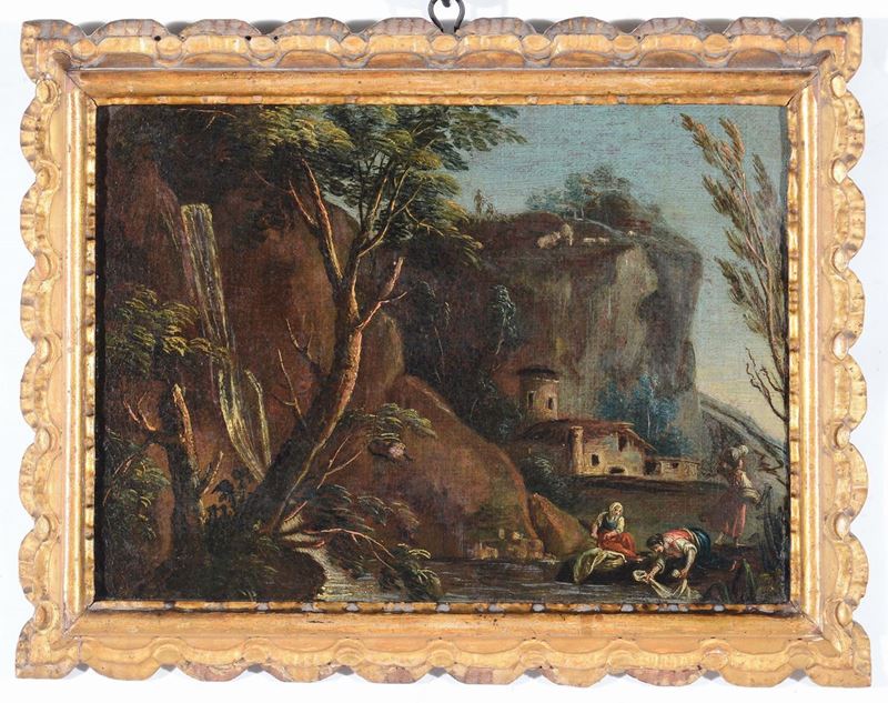 Scuola del XVIII secolo Paesaggi con figure e animali