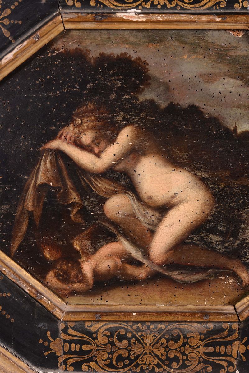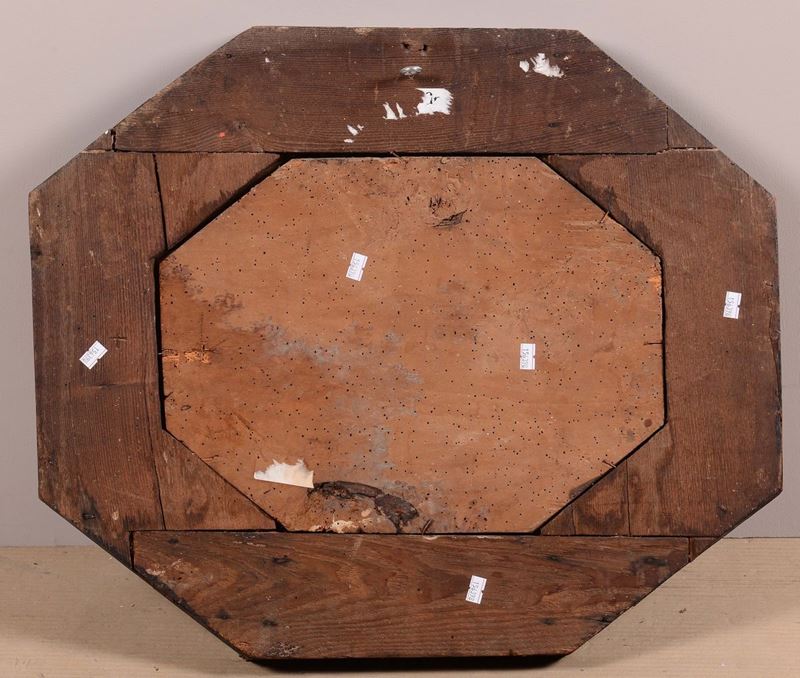 olio su tavola ottagonale, cm 31x41, in cornice ebanizzata