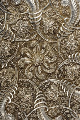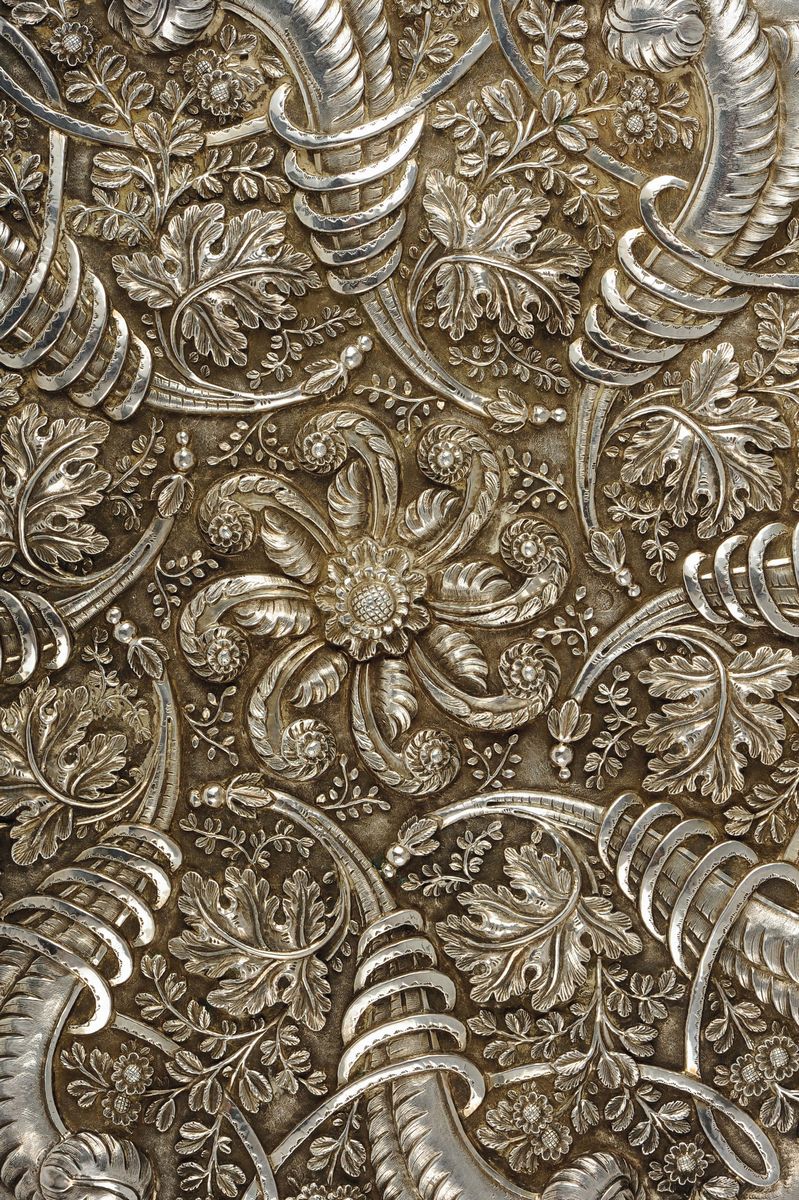 Specchio circolare in argento, manifattura Anglo Indiana