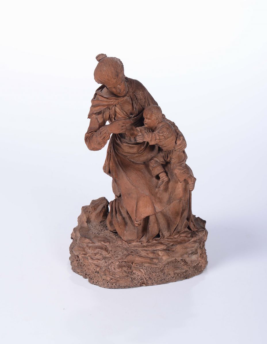 Statua terracotta raffigurante donna con bambino, Sicilia inizio XX secolo