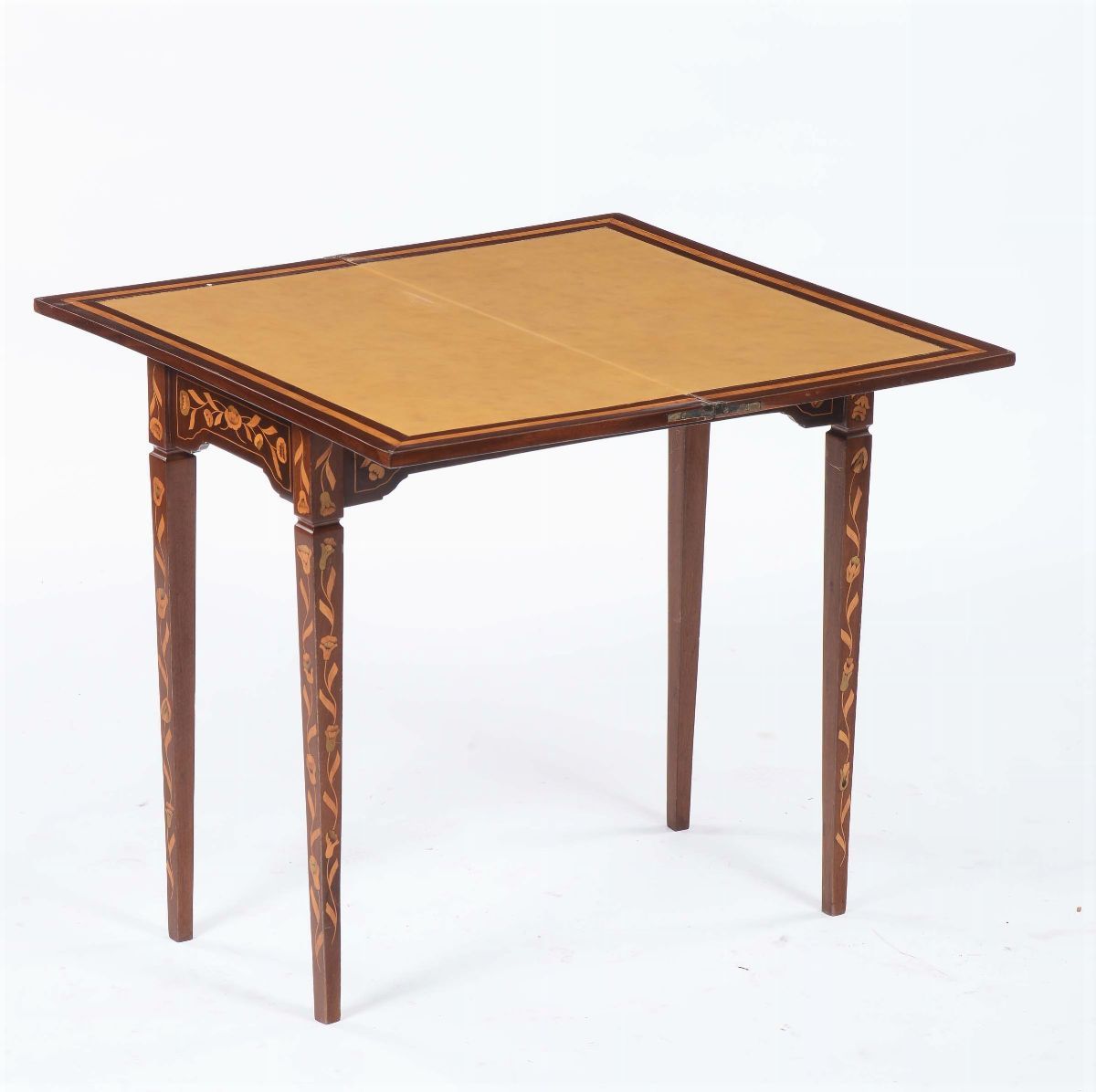 Tavolo da gioco lastronato ed intarsiato, XX secolo