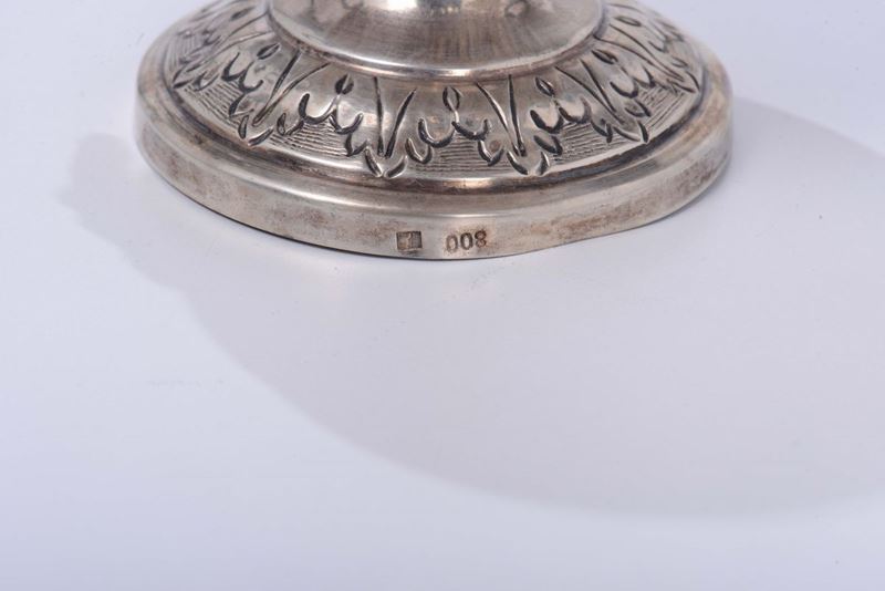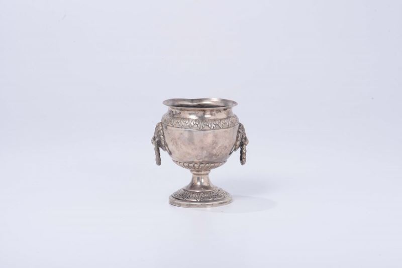 Vaso ad anfora in argento sbalzato a motivi acantiformi. Punzoni Napoli, metà XIX secolo