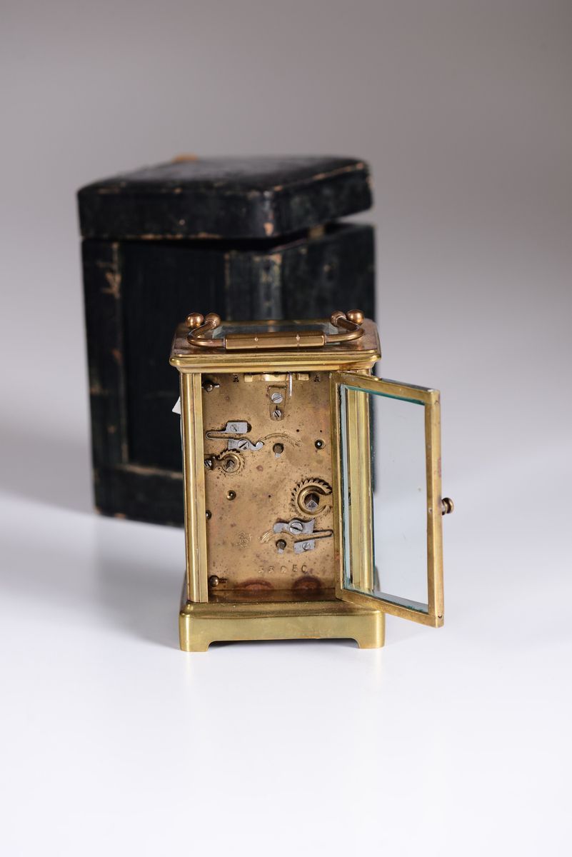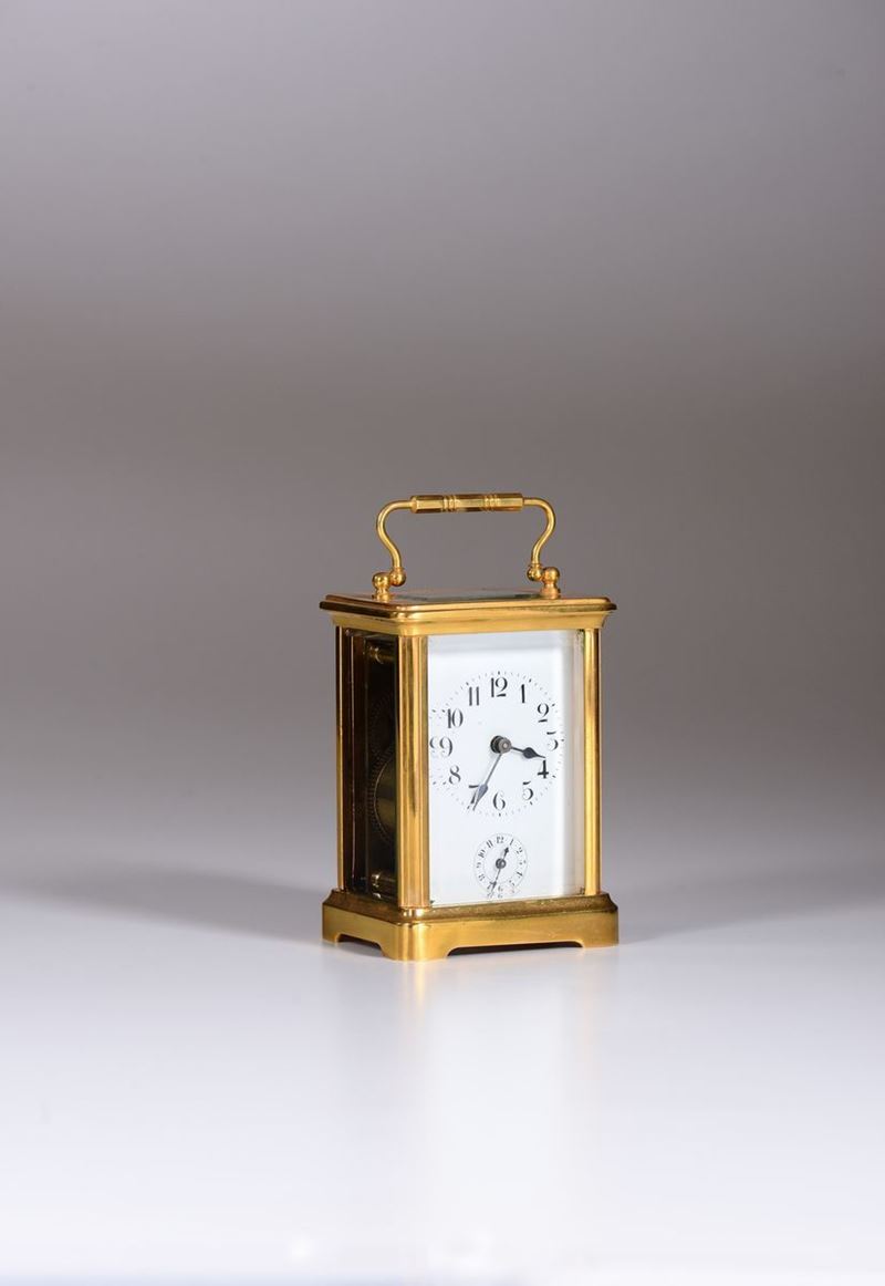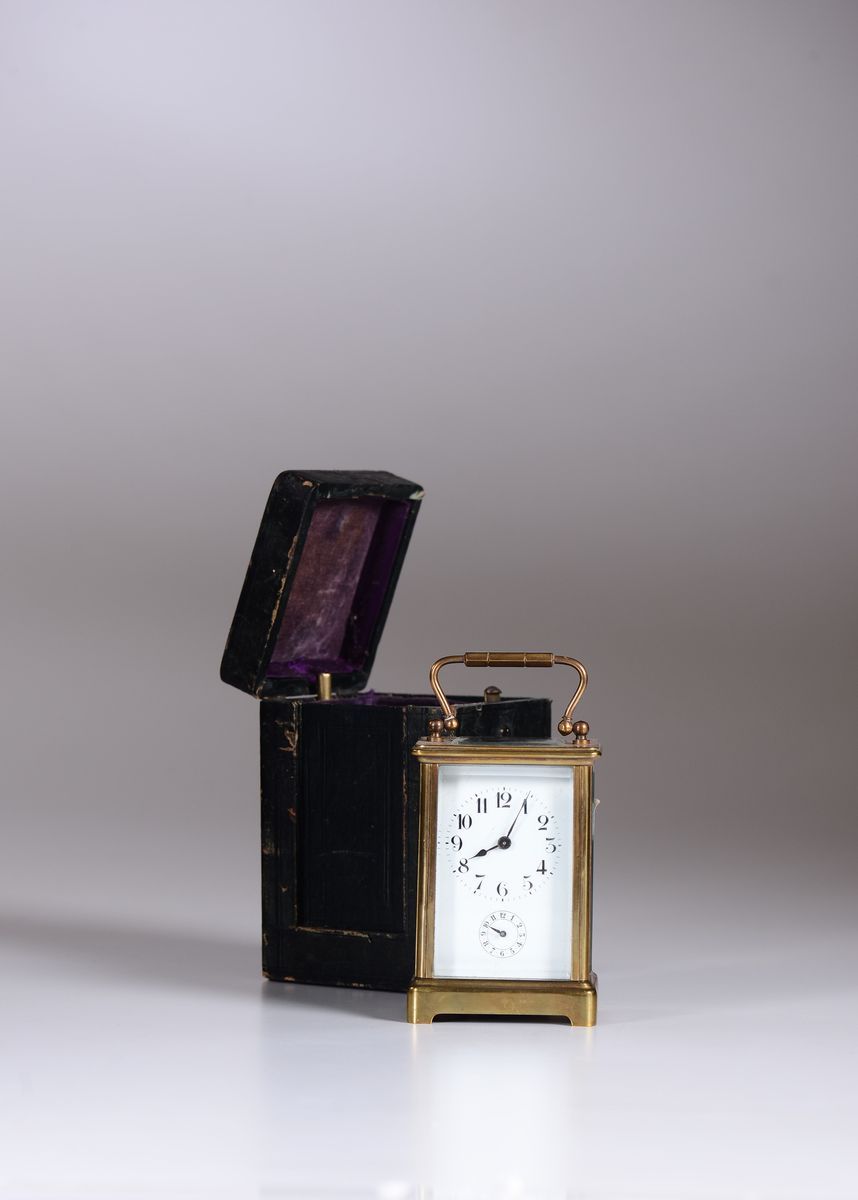 Quadrante con numerazione araba per le ore e quadrantino sottostante per la sveglia, una con custodia, cm 7,5x6x12 e cm 8x6x12