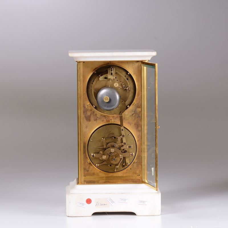 Orologio in marmo bianco e bronzo dorato, Inghilterra XIX secolo