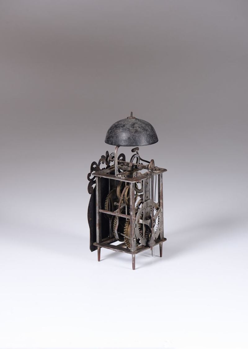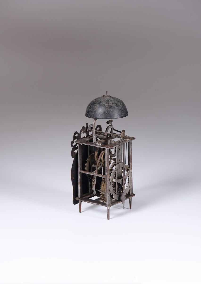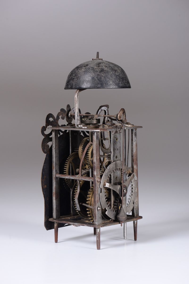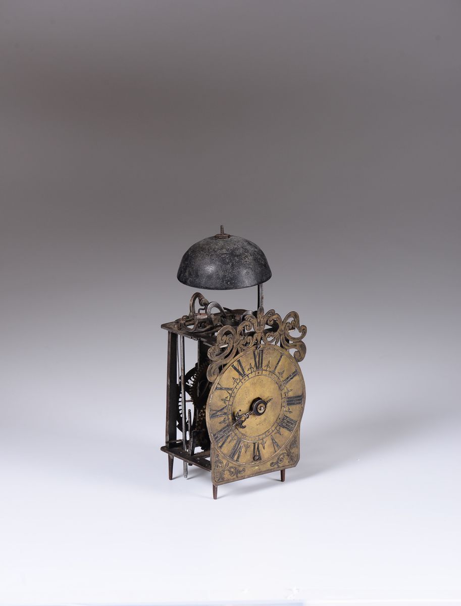 Quadrante in metallo dorato con numerazione romana in nero per le ore. scappamento a verga con suoneria delle ore su campana.cm 12x9x25