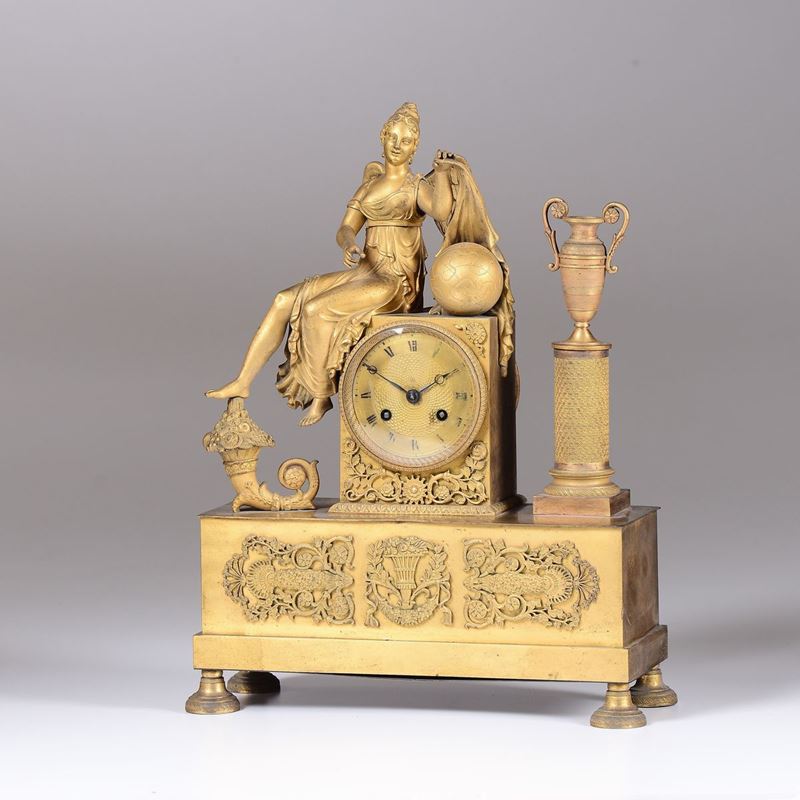 Pendola da tavolo in bronzo dorato, Francia Carlo X