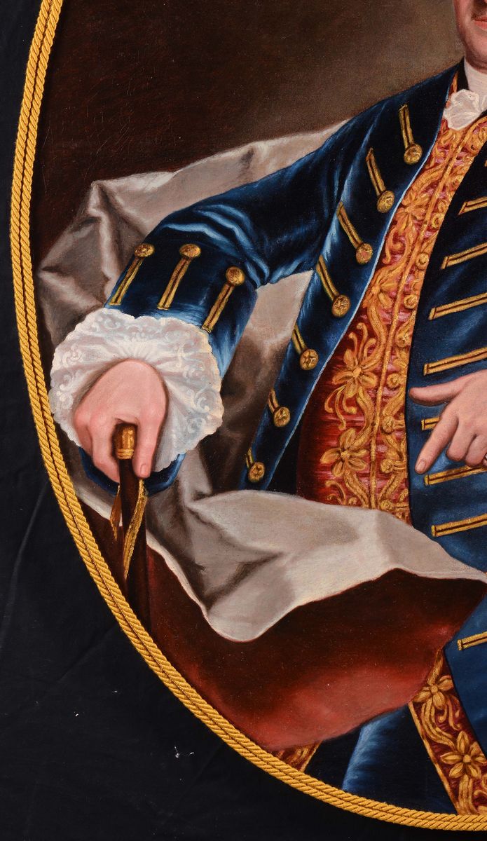 Expertise di Andrea Emiliani del 7/6/2000. [...] Nell'atelier del Mengs lavorò a ritratti di nobiltà europea, alcuni ritratti si trovano in musei come Louvre e Versailles. La personalità di stile e di operatività del Maron non ha mai cadute, infatti bisogno riconoscere che la tensione psico fisica contenuta nella fisionomia dei personaggi ritrattati, caratteri anatomici riconoscibili, nell'avanzamento dell'arte del ritratto. Il nostro dipinto ne è la prova, alto livello di compenetrazione nel ritratto e dunque gli occhi e lo sguardo, del nobile francese. Il dipinto che stiamo esaminando possiede molti caratteri dell'età media del pittore, circa 1760/1770 in cui venne eseguito. Prediligiva le tinte vivaci e brillanti. I particolari a cui donava la nitidezza come ì panneggi che avvolgono il nobile sono di grande eleganza con gli accostamenti delle tinte. In particolare il viso perfetto nella sua austerità. Le vesti presentano preziosità e raffinatezza nella lavorazione, come i pizzi e il panciotto con tinte dorate. L'effetto che riusciva a dimostrare al ritratto era la prospettiva realistica da sembrare un'immagine fotografica. D. tratto appare nell'insieme, come ribadito, molto elegante e l'assetto fisionomico indirizzato, al modo che il ritrattato desiderava verso la nobiltà, di aspetto. Dai colori usati per questo dipinto, fa pensare a un nobile francese. [...]