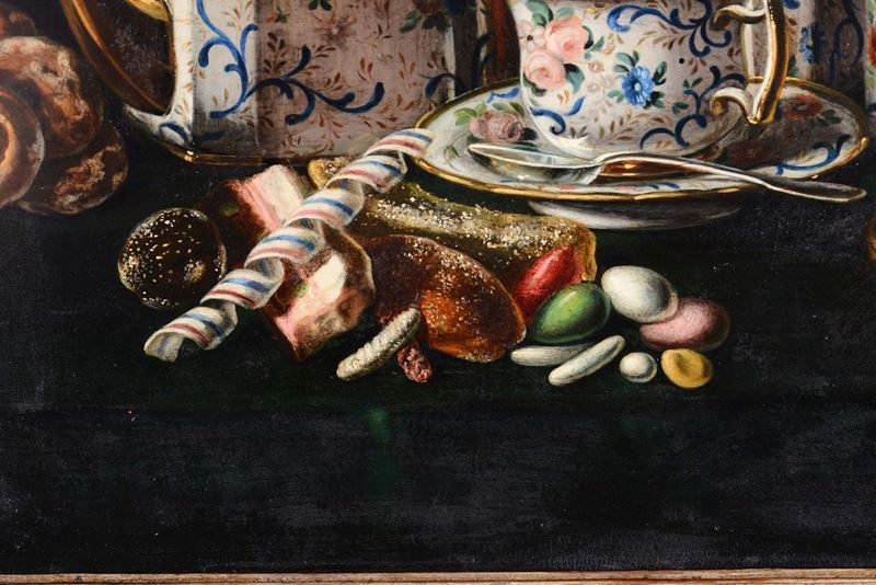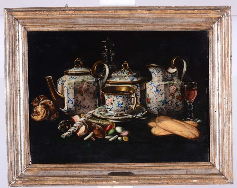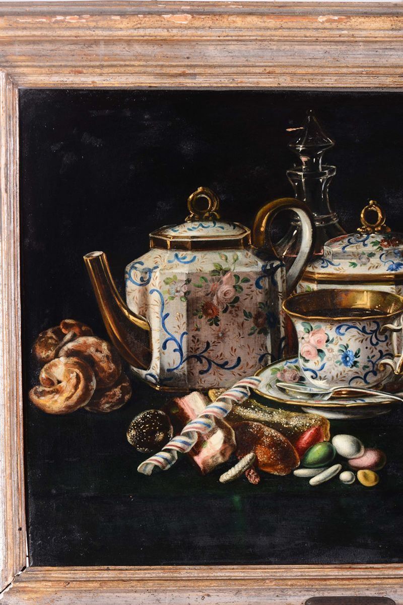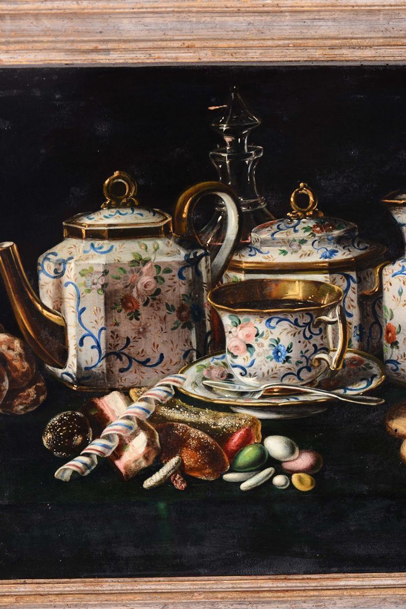 Christian Marie Colin De La Biochaye (Béré 1750 - Rennes 1813) Natura morta con servizio da the in porcellana