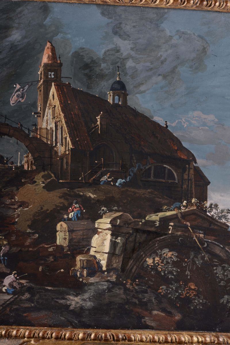 Giovanni Antonio Canal, detto il Canaletto (Venezia 1697 – 1768) Capriccio con una cappella sulla riva di una collina con [..]