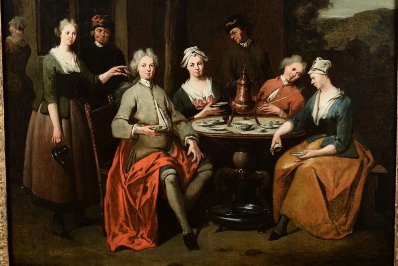 Jan Josef I Horemans (Antwerp 1682 - 1759) Scena di locanda