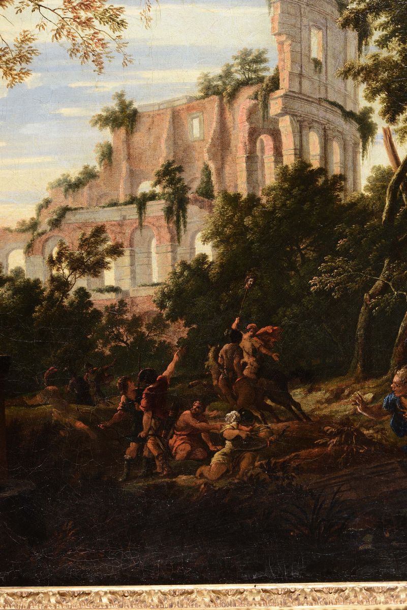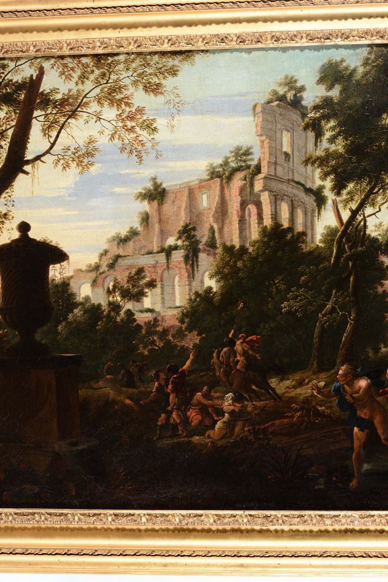 Scuola Romana del XVIII secolo Capriccio architettonico con figure