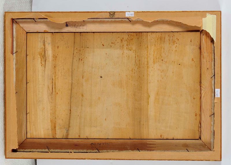 olio su tavola, cm 27x45, siglato M.O. in basso a sinistra