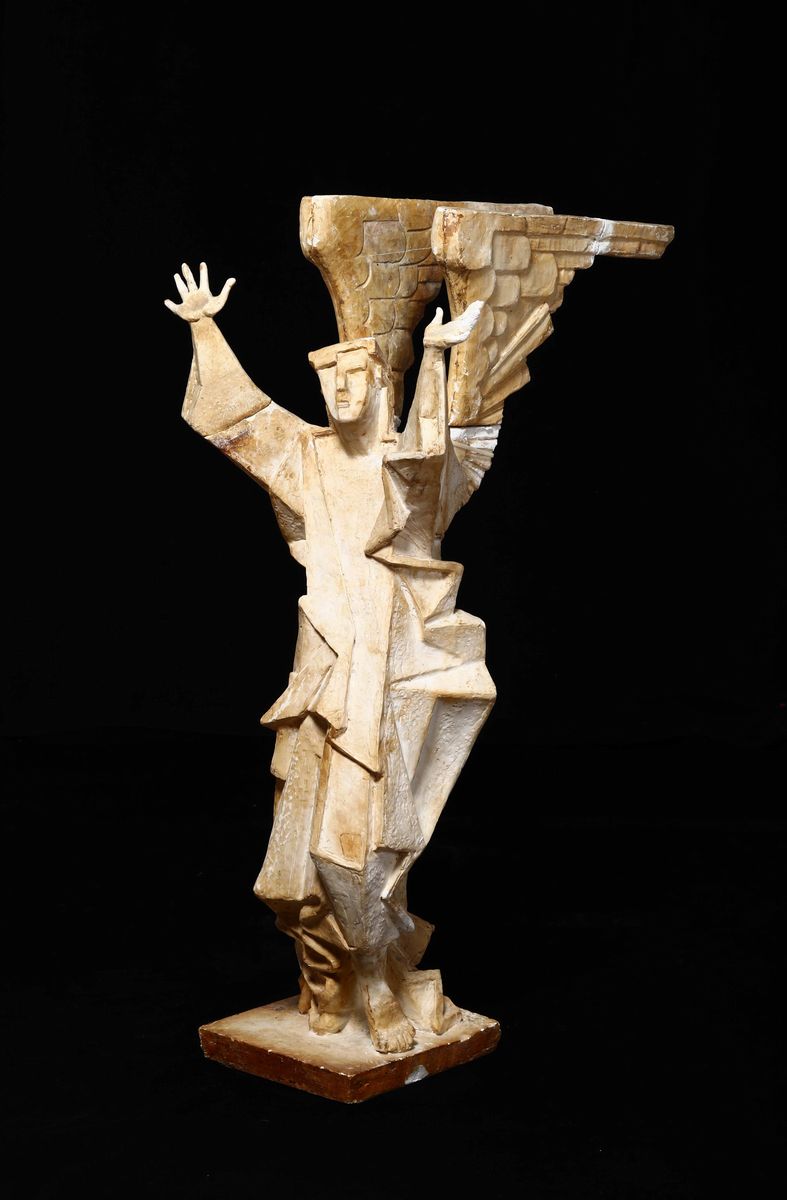 scultura in gesso per fusione raffigurante Angelo dell'altare della Chiesa dei Padri Somaschi, Rapallo (rotture e difetti)