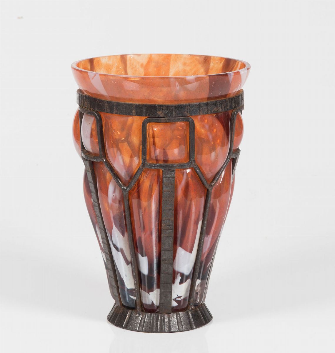Vaso in vetro con macchie multicolori soffiato in forma di ferro.Altezza cm 26,5