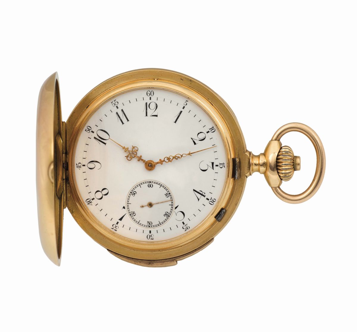 Anonimo, orologio da tasca, in oro giallo 18K, con smalti e ripetizione dei minuti. Realizzato nel 1900 circa