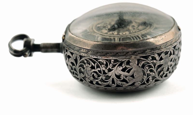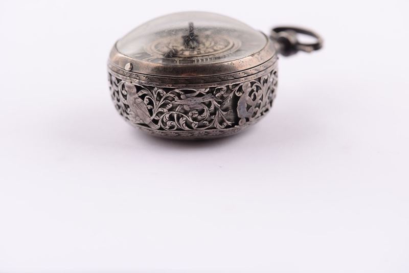 Francesco Papillon, orologio da tasca in argento, controcassa con decorazioni floreali e di animali. Realizzato nel 1700 [..]
