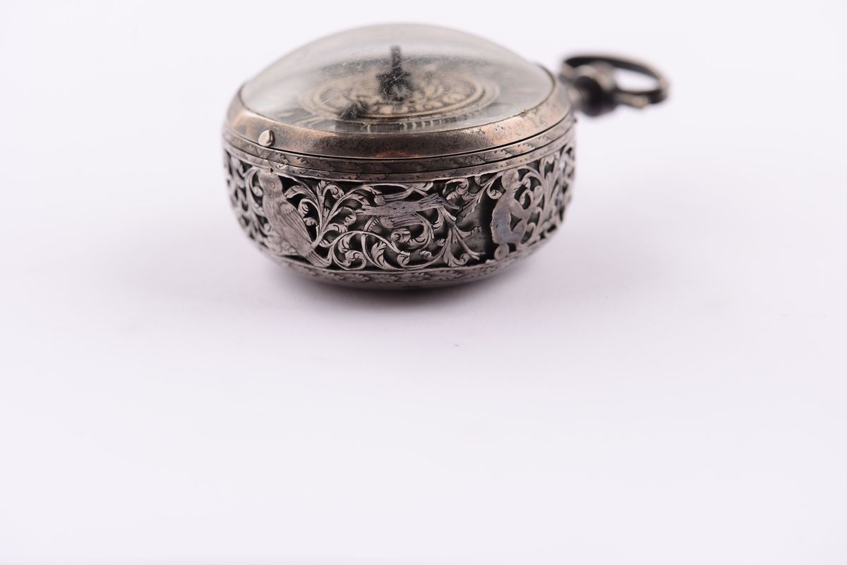 Francesco Papillon, orologio da tasca in argento, controcassa con decorazioni floreali e di animali. Realizzato nel 1700 circa