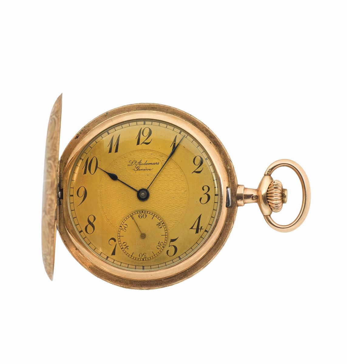 LOUIS AUDEMARS, Geneve, orologio da tasca, savonette, in oro giallo 14K con smalti. Realizzato nel 1920 circa