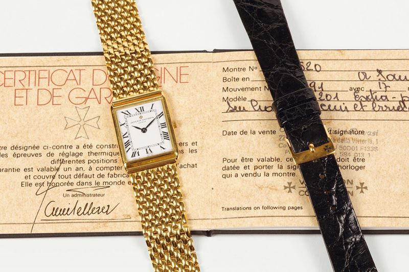 VACHERON CONSTANTIN, Geneve, ref.33201, Extra piatto, orologio da polso, in oro giallo 18K con bracciale in oro. Accompagnato da cinturino originale aggiuntivo e fibbia in oro originale, Garanzia. Realizzato nel 1990 circa
