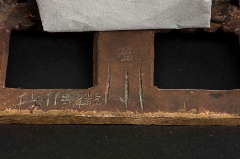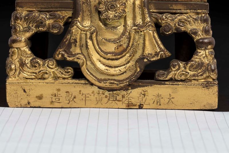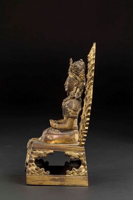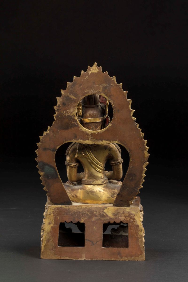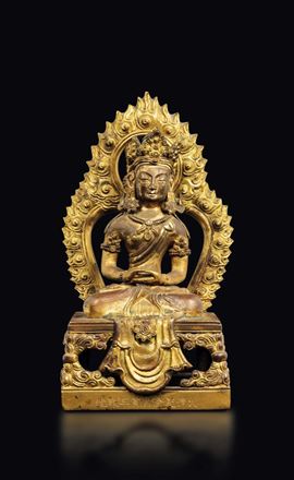 Figura di Amitayus in bronzo dorato con aura, Cina, Dinastia Qing, marca e del peiodo Qianlong (1736-1795)