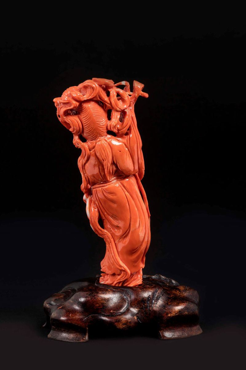 Figura di Guanyin scolpita in corallo con strumento musicale, Cina, inizio XX secolo