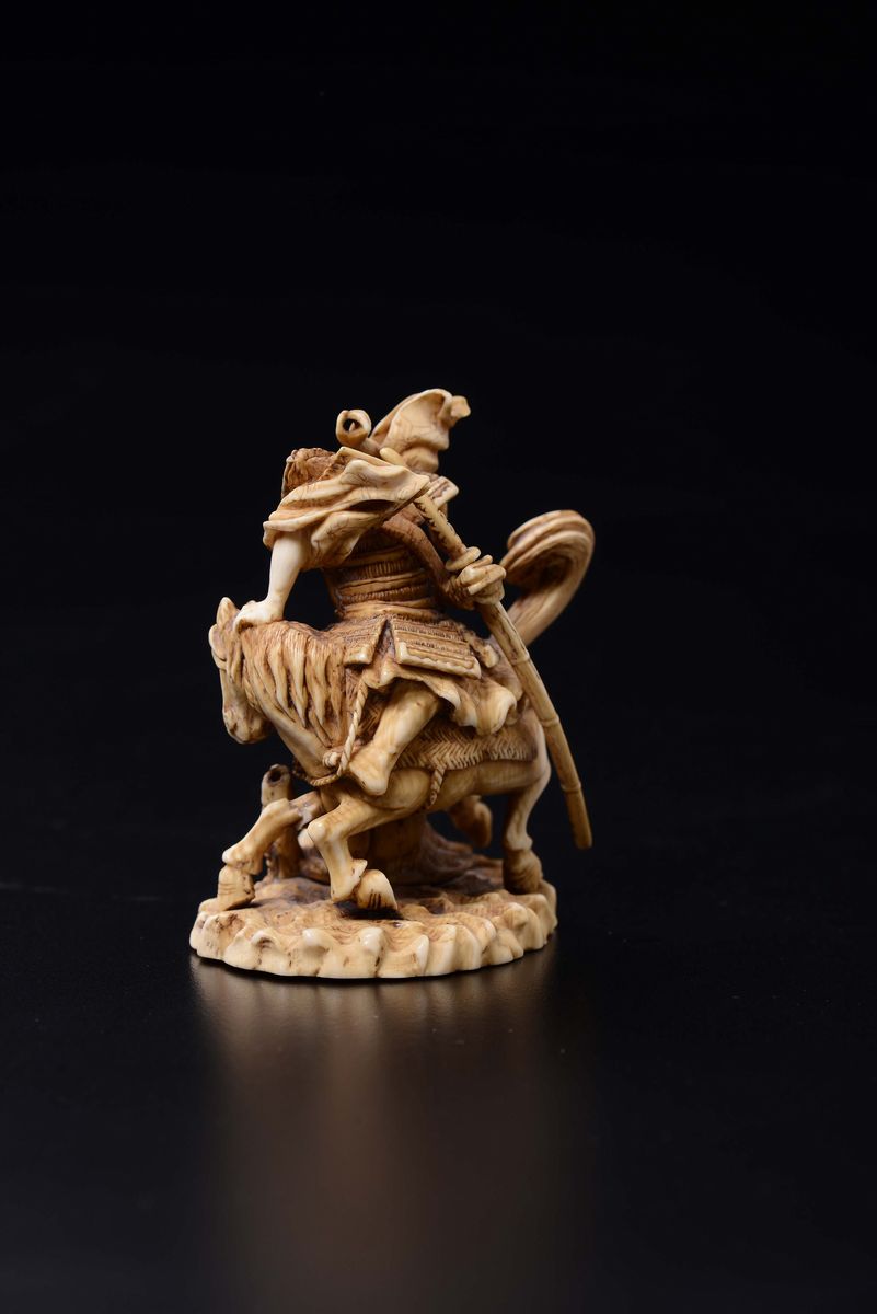 Figura di samurai a cavallo scolpito in avorio, Giappone, inizio XX secolo
