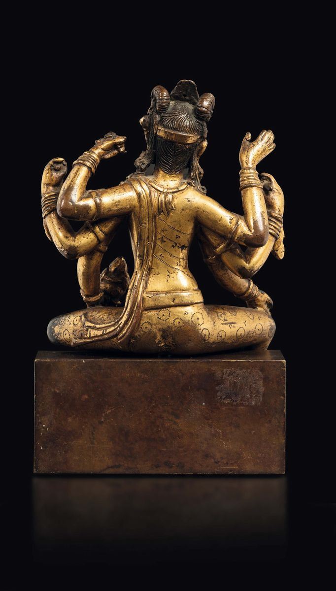 Figura di Vasudhara in bronzo dorato con innesti di pietre dure, Nepal, XIV secolo