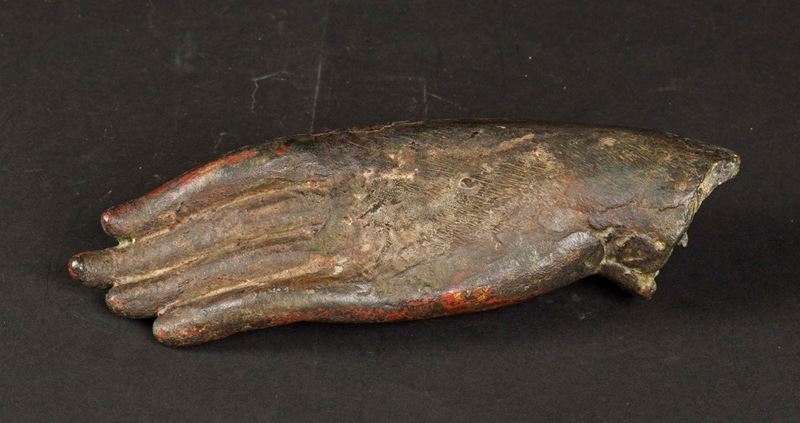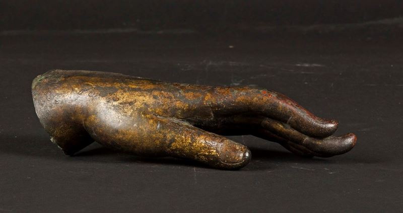 Mano di Buddha in bronzo con tracce di doratura, Cina, Dinastia Ming, XV secolo