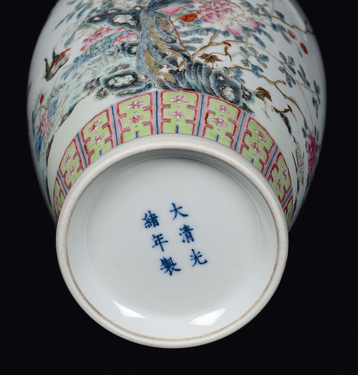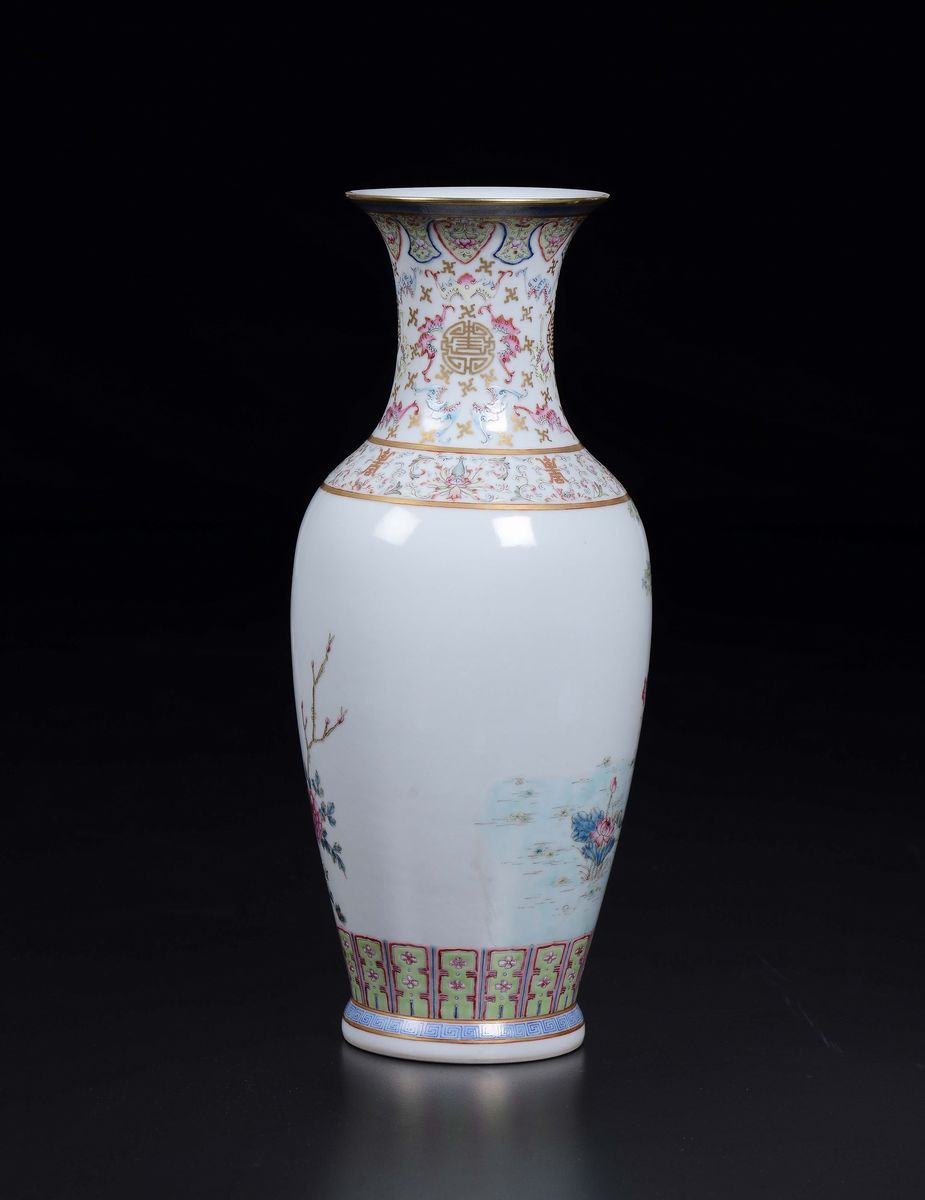 Vaso in porcellana a smalti policromi con decoro di fiori, fenice ed uccellini, Cina, Dinastia Qing, XIX secolo