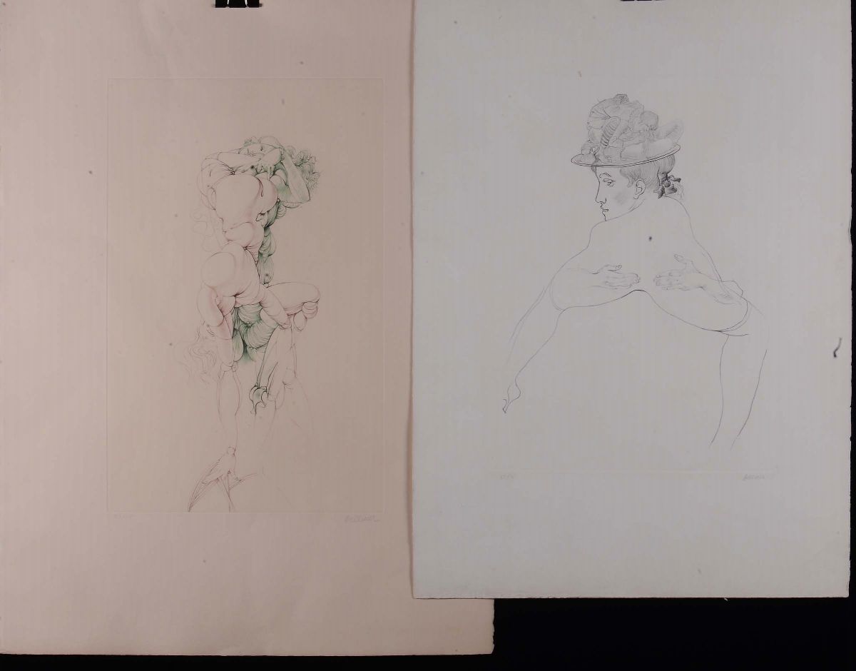 Lotto di tre litografie di Bellmer ed una di altro autore, da cm 70x50 a cm 98x68