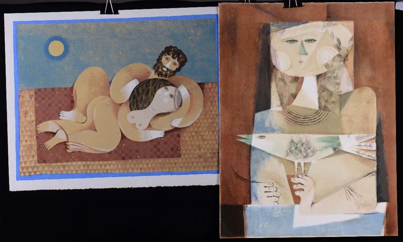 Lotto di sette litografie, varie misure e varie tirature, da cm 65x50 a cm 46x42