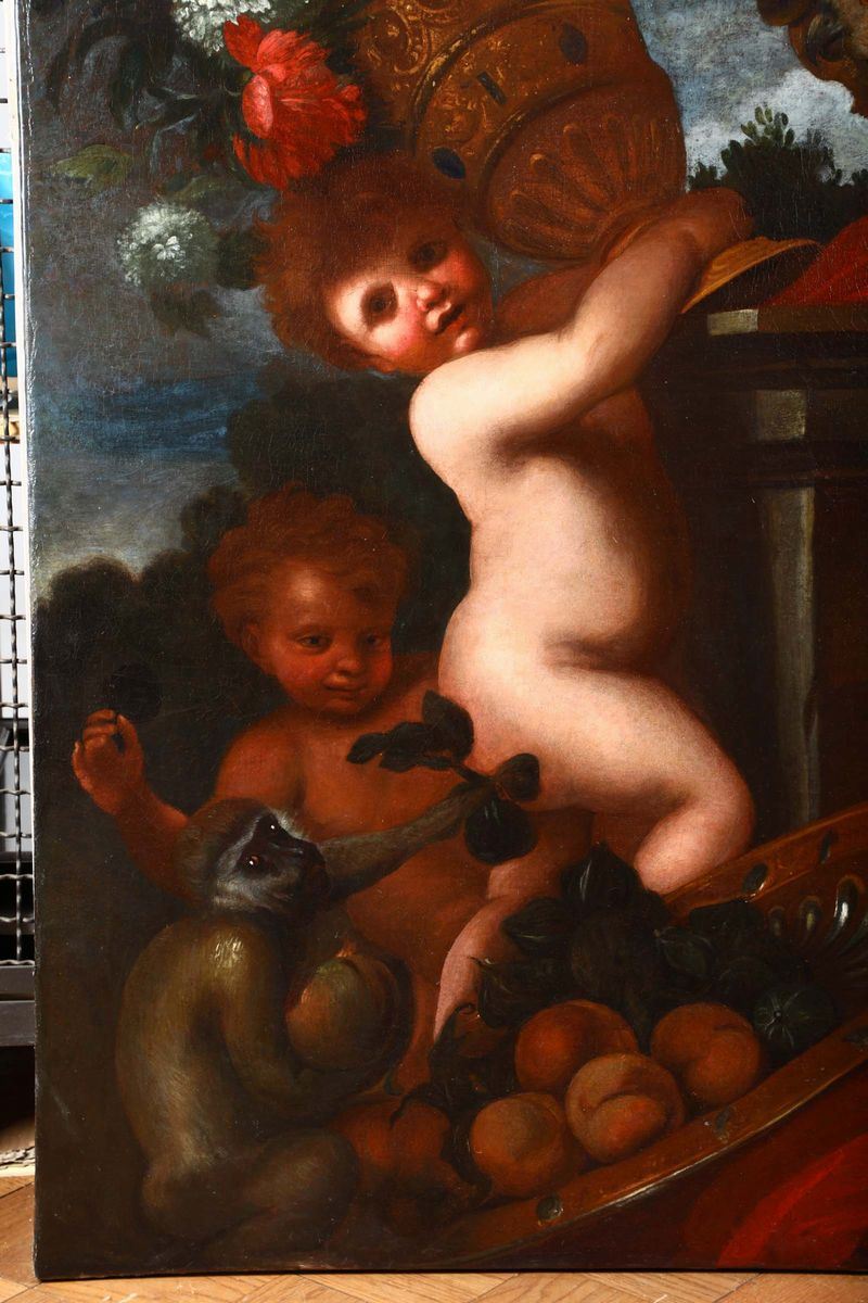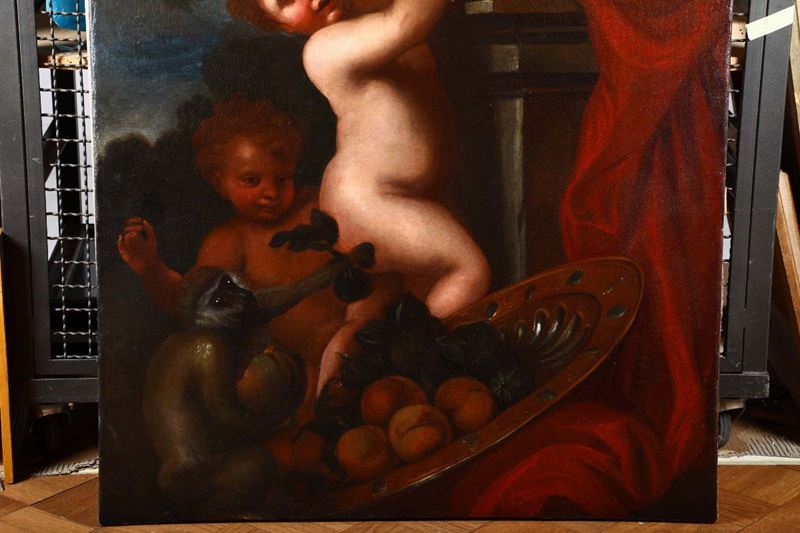 Domenico Piola (Genova 1627-1703) Gioco di putti con animali fiori e frutta