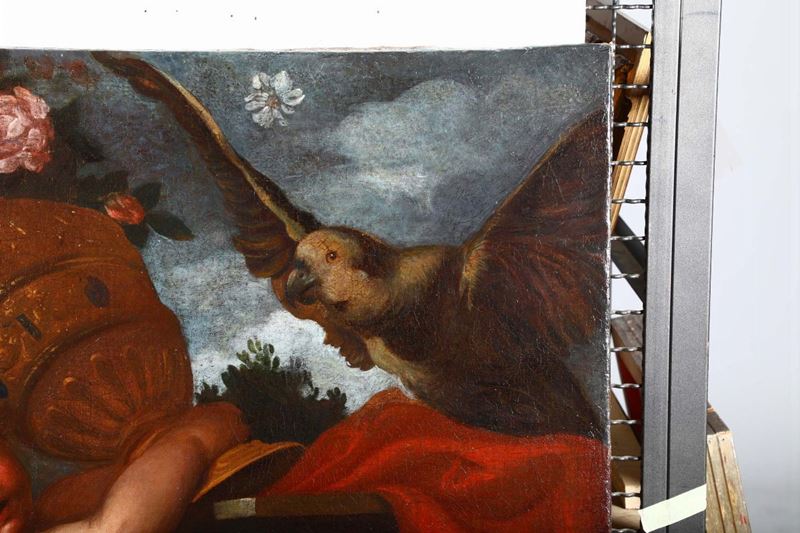 L’opera replica con piccole varianti nella stesura l’analogo dipinto di Domenico Piola appartenente al Palazzo Torriglia di Chiavari. Il dipinto faceva parte con ogni probabilità di un gruppo di quattro tele simboleggianti le stagioni. I fiori ed i frutti sono evidentemente i prodotti della natura al risveglio, mentre il pappagallo e la scimmia, secondo l’Iconologia di Cesare Ripa (1603) erano attributi anch’essi della Primavera. Come di consueto il Piola si avvale nell’esecuzione delle nature morte e degli animali, della collaborazione del cognato Stefano Camogli, gran specialista del genere. Si ringrazia Camillo Manzitti per l'attribuzione di quest'opera.