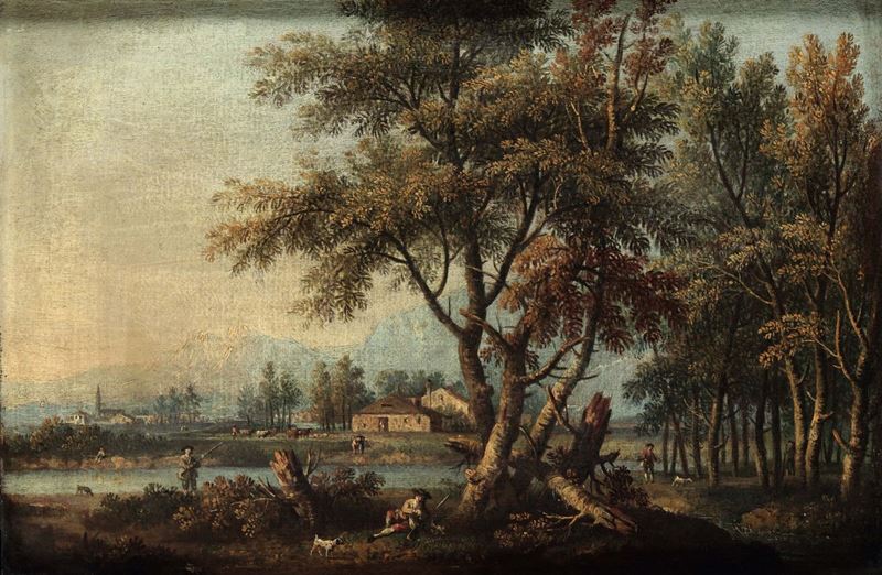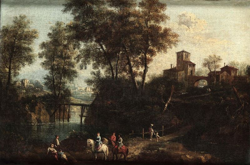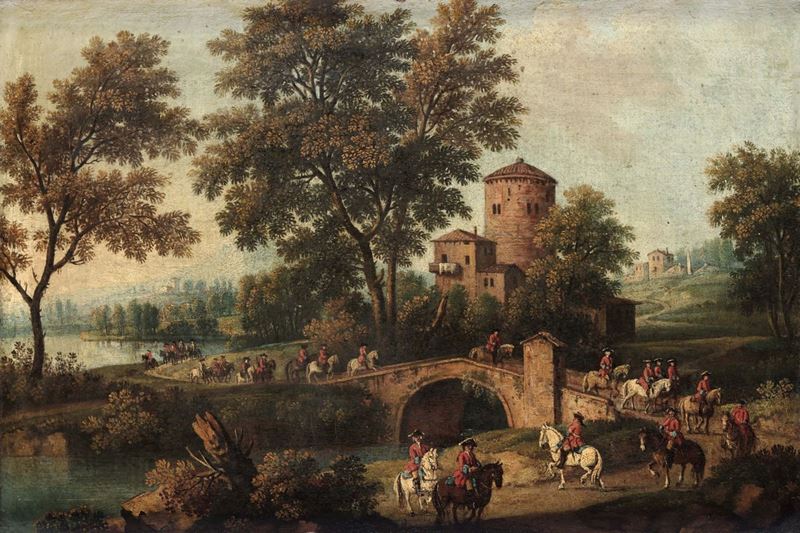 Giovan Battista Cimaroli (1687-1753) Paesaggi con figure e cavalieri