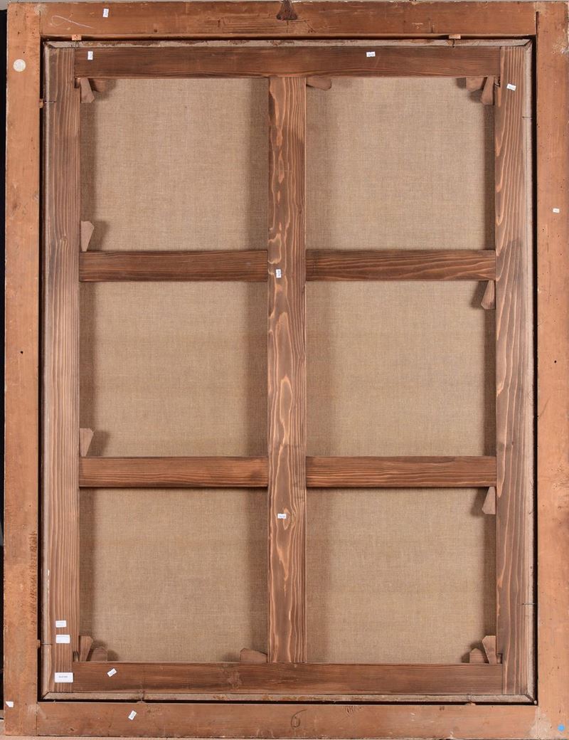 coppia di dipinti ad olio su tela, cm 173,5 x 129