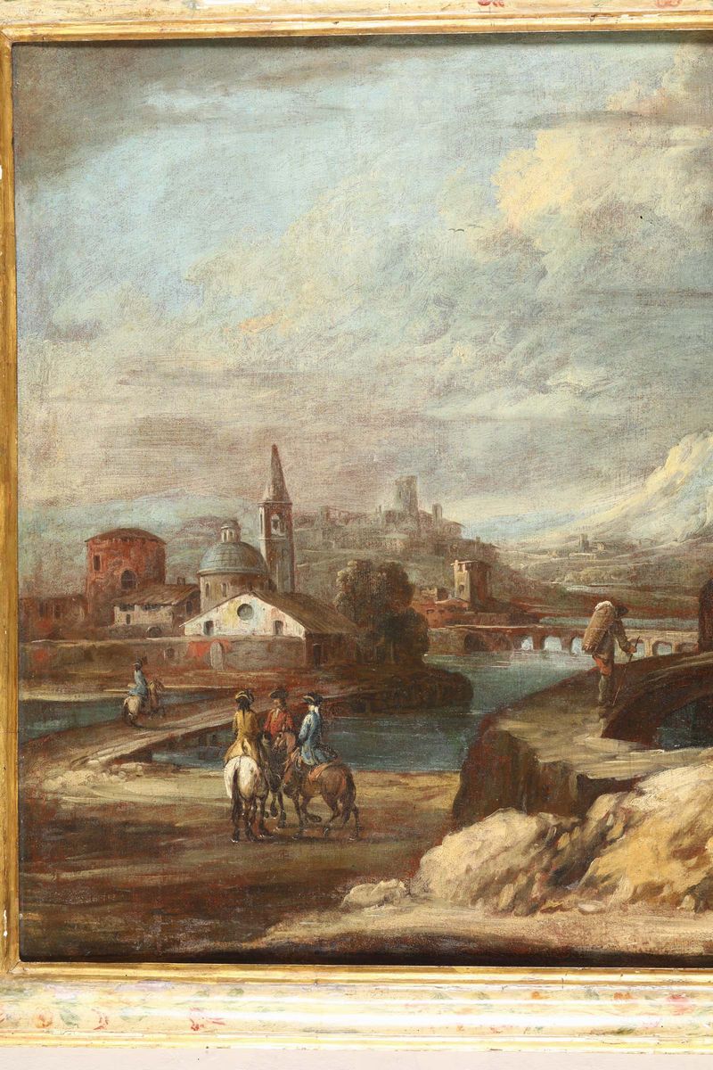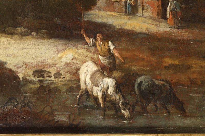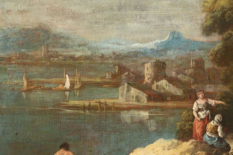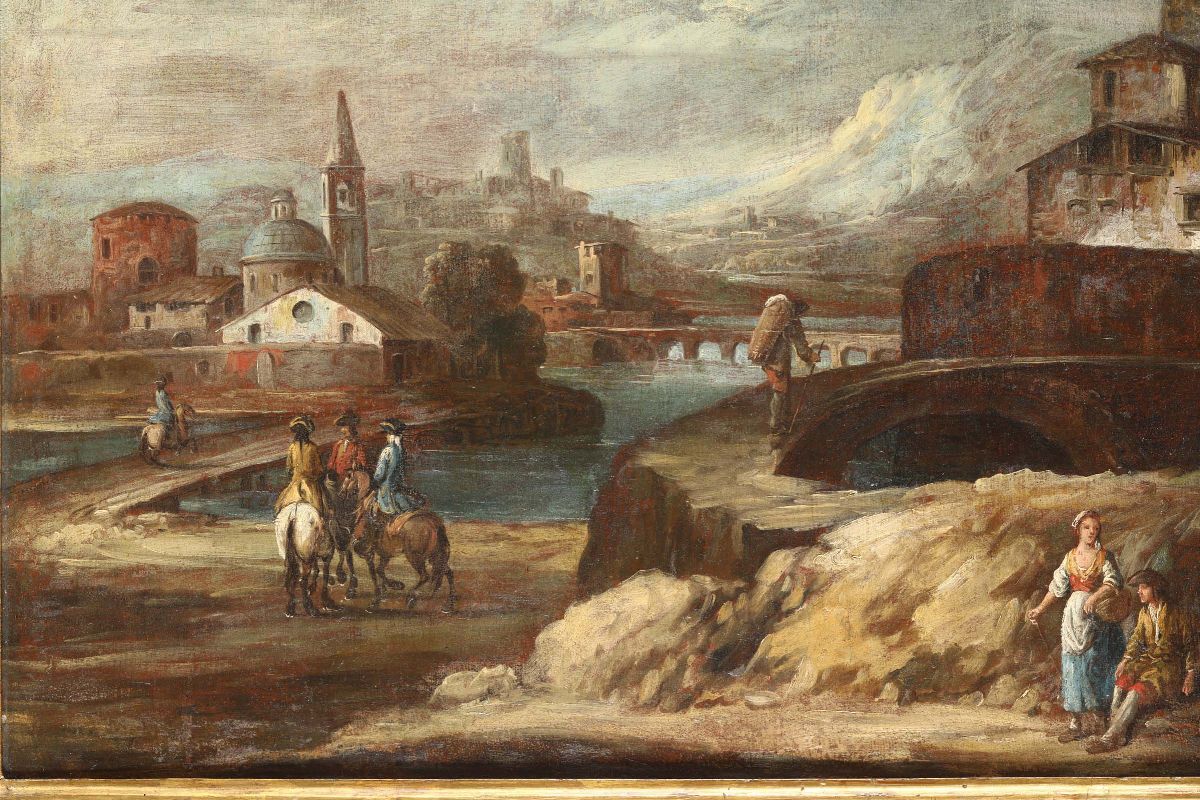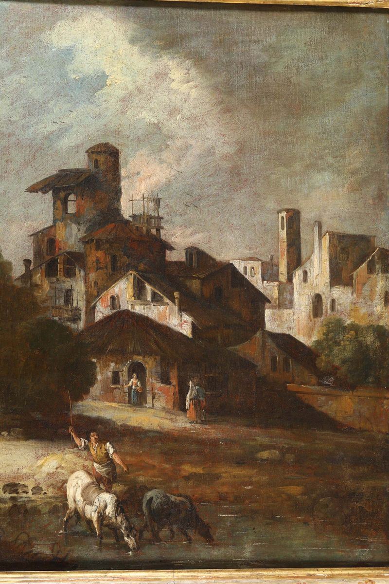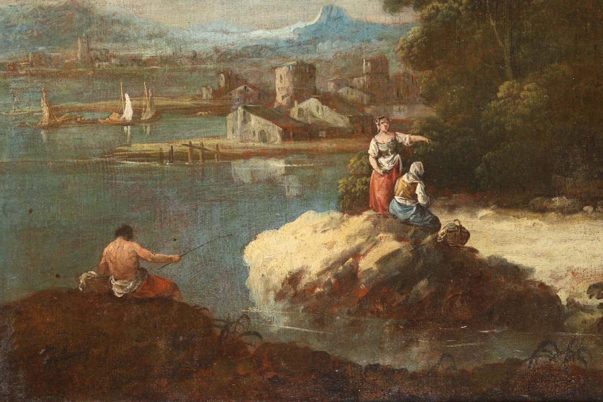 Coppia di paesaggi con figure
