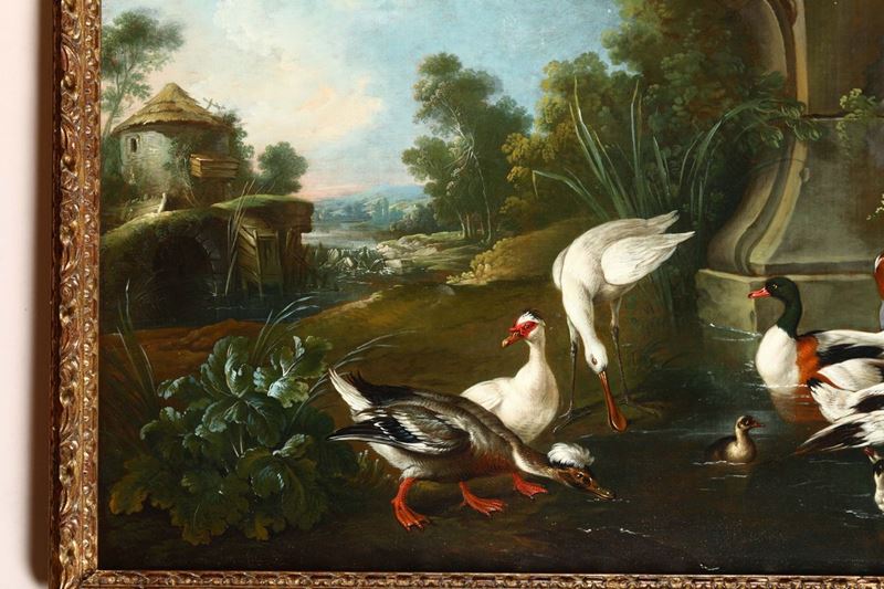 Jaques Charles Oudry (1720 - 1778) Paesaggio con uccelli lacustri