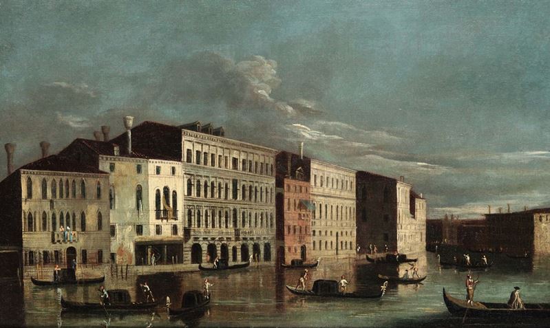 Buone condizioni conservativo/estetiche. Entrambi foderati con buona elasticità della tela. L'osservazione dei dipinti con lampada di wood evidenzia per entrambi omogenee ossidazioni della vernice. Veduta con cupola: pochissimi ritocchi al colore, nell'area del cielo. Veduta con gondole in primo piano: area del cielo presenta molti e diffusi ritocchi al colore. Non si osservano sollevamenti o stacchi di colore.
