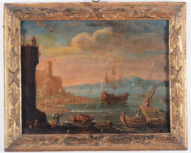 Scuola Italiana del XVIII secolo Vedute costiere con velieri