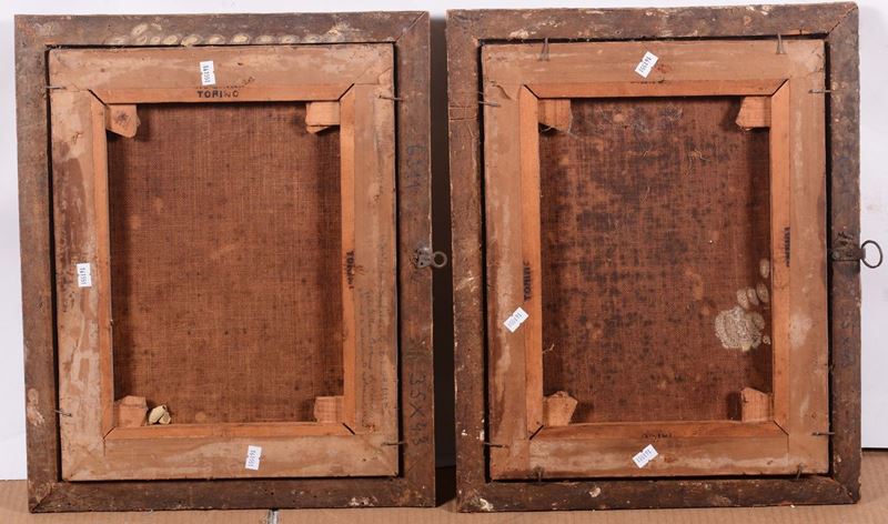 coppia di dipinti ad olio su tela, cm 31x40