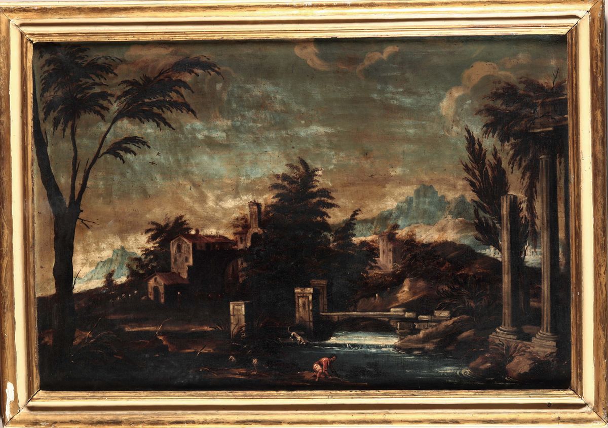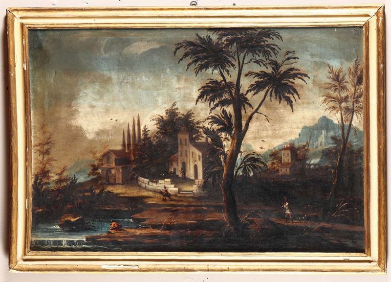 Scuola italiana del XVIII secolo Quattro paesaggi con personaggi