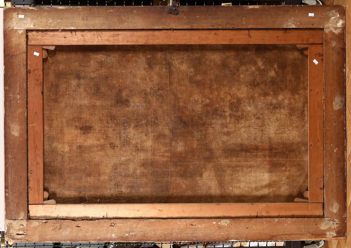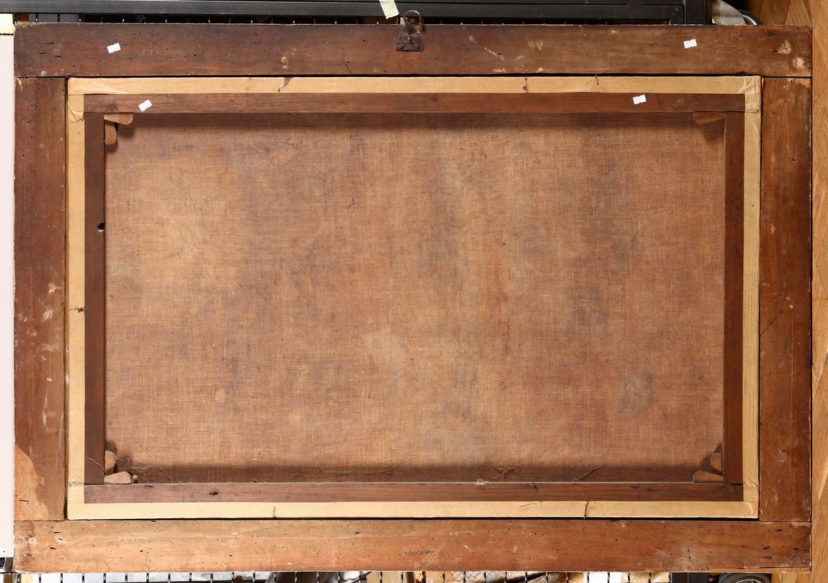 coppia di dipinti ad olio su tela, cm 87x140